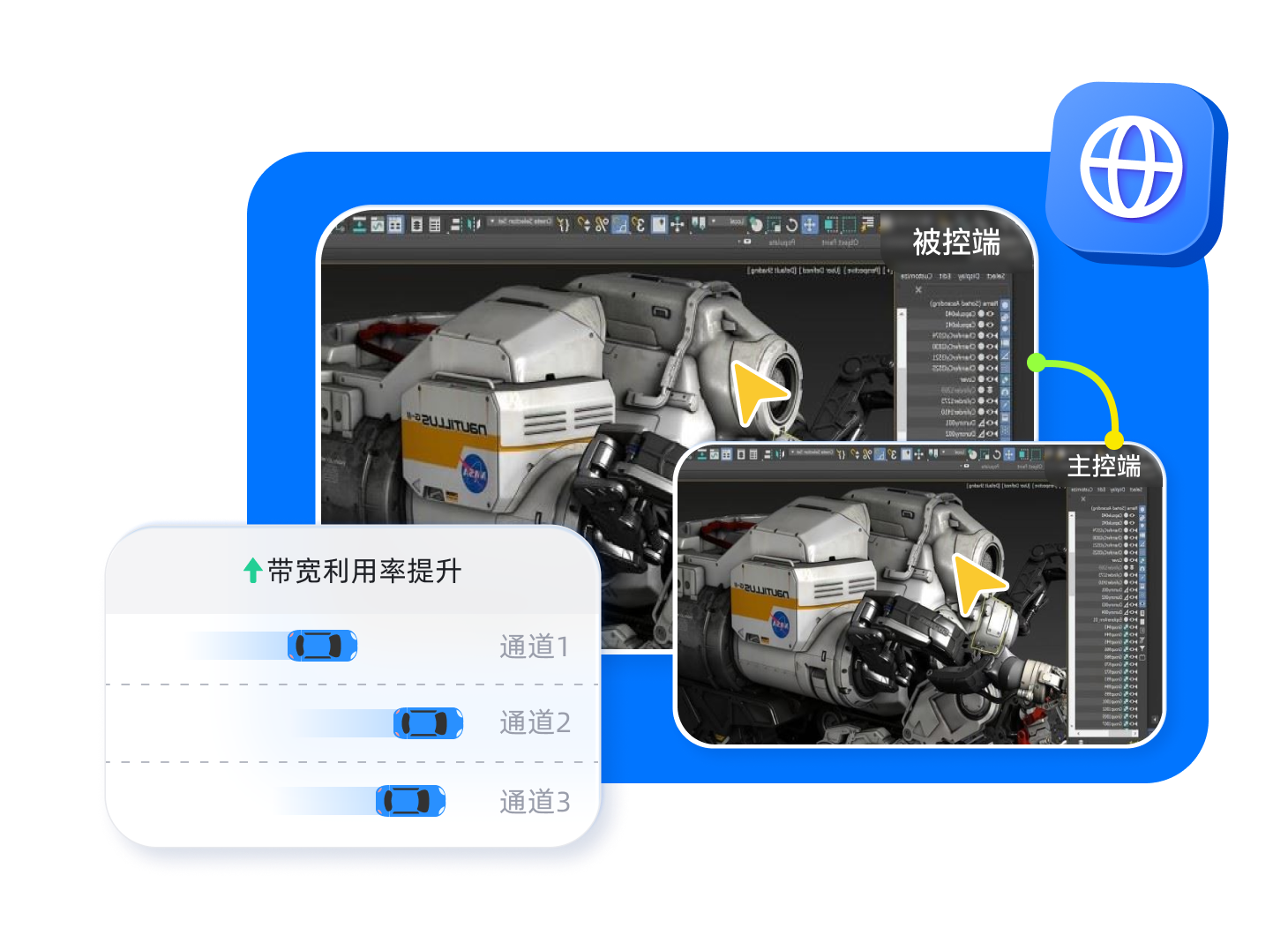 多场景 复杂通讯网络提速。 现已集成至远程桌面、云桌面、数字孪生